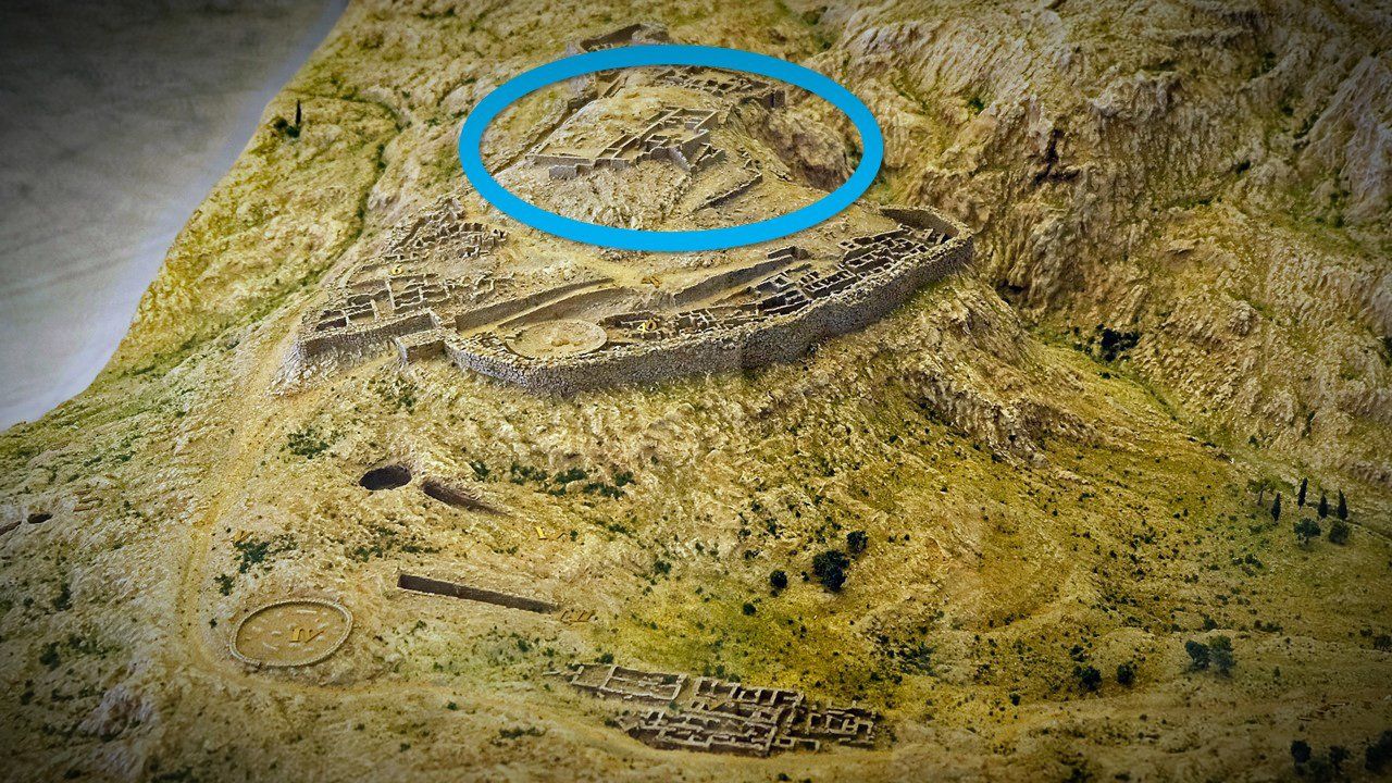 Die Westerweiterung der Mauer mit dem Gräberrund A, dem Getreidespeicher und der großen Rampe. © Bild: Wikimedia Commons