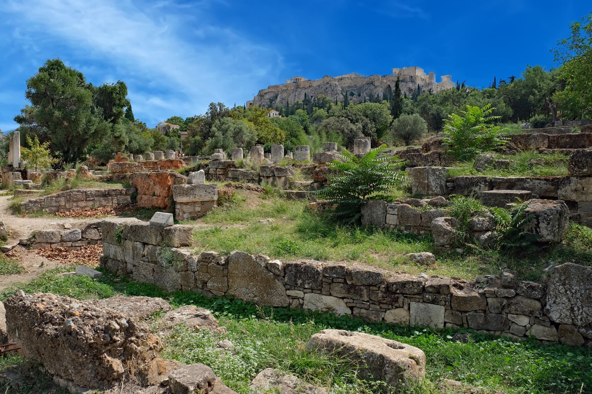 Der als Versammlungsplatz der Polis genutzte Ort im Zentrum des antiken Athen diente auch Denkern wie Sokrates, Diogenes oder Zenon von Kition als informeller Vortragssaal. Während der hellenistischen Zeit strömten Philosophen, Studenten und Wissbegierige von überall her aus dem Mittelmeerraum in die Stadt. Um 100 n. Chr. ließ ein gewisser Titus Flavius Pantanos im südlichen Teil der Agora eine Bibliothek errichten. Mitte des 2. Jhs. n. Chr. wurde das nach Agrippa benannte Odeion in einen Vorlesungssaal für Philosophen umgewandelt. Und sogar noch während des 4. und 5. Jhs. n. Chr. waren die angrenzenden Hügeln mit eleganten Villen übersät, von denen einige als private Philosophenschulen genutzt wurden.